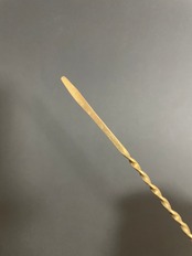 金属タイプの耳かきです。平板型とコテ型の中間のような形状で、耳垢を剥がすのに適しています。